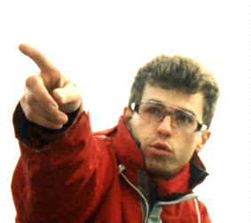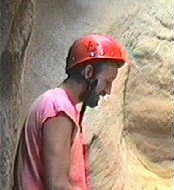 L'homme en noir, alias Goldorak (cf tenue spéléo et canyon)